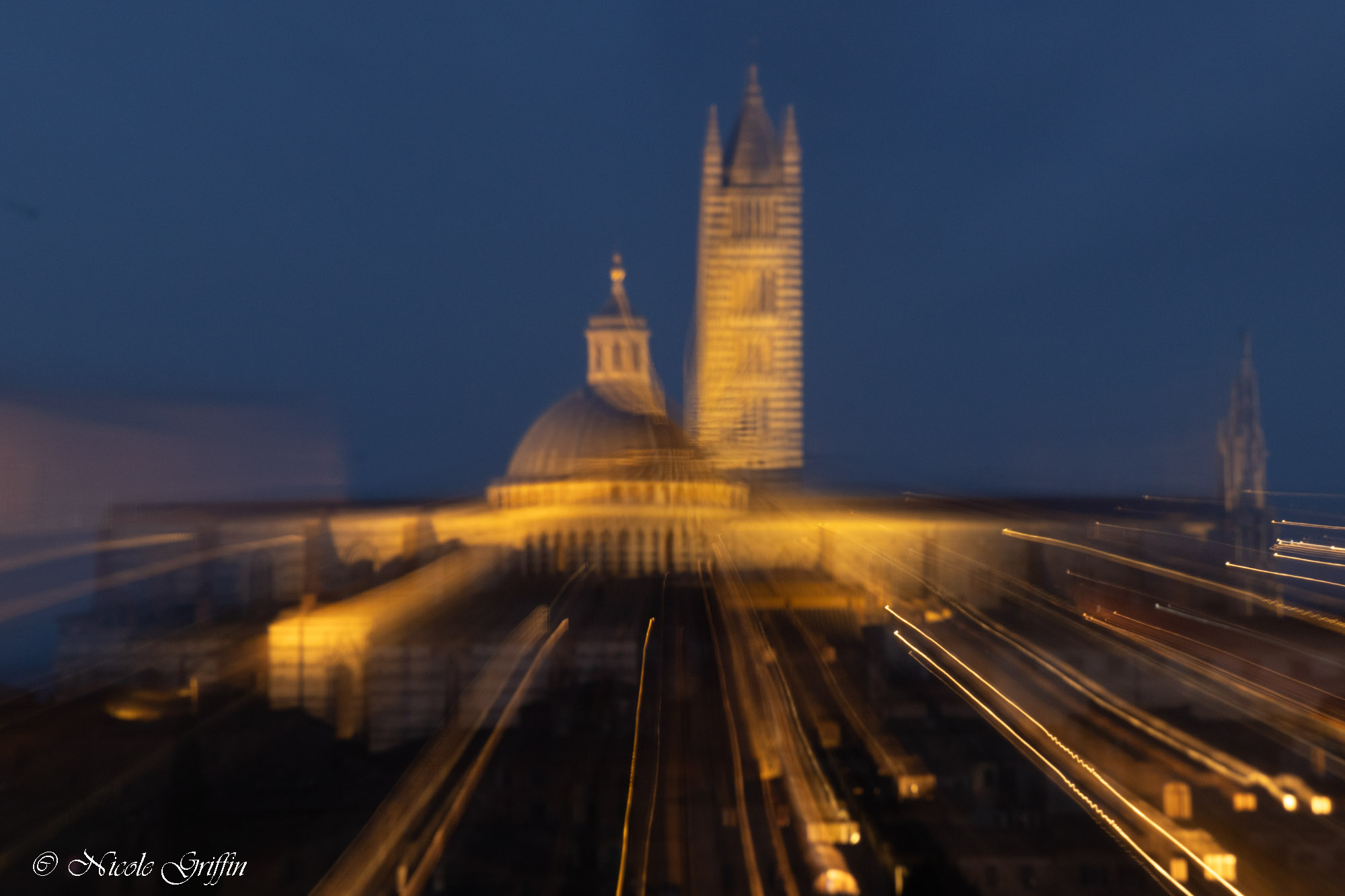 Because Siena was only a short drive from Dievole, we visited twice: once for a full day excursion, once for a brief evening journey to take distance shots of the Duomo at blue hour. Siena’s Duomo is not as large as Florence’s, but I found its design much more interesting with its black and white stripes. On the full day visit, we climbed up into the rafters of the church (much less physically taxing than the belltower in Florence) and looked out over the city.